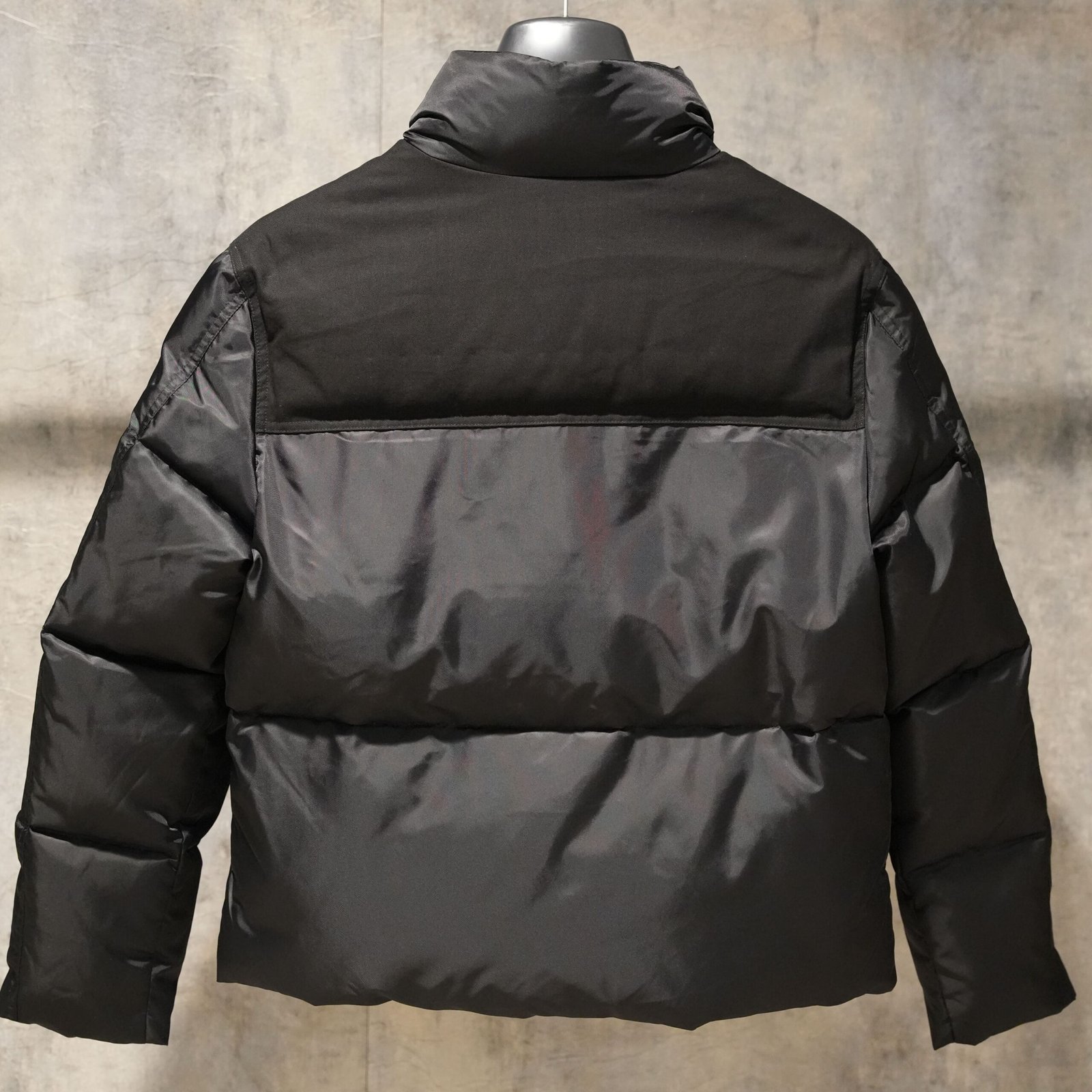 PradaRe-Nylon oversized cropped puffer jack met donsvulling